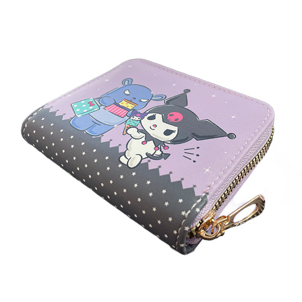 Esta billetera compacta y adorable es perfecta para llevar tus monedas, billetes y tarjetas con estilo. Decorada con un encantador diseño de Kuromi y su amigo Baku disfrutando snacks, esta pieza combina funcionalidad y estética kawaii.