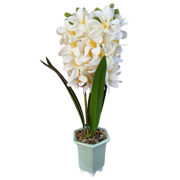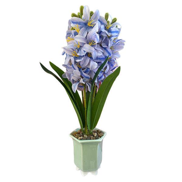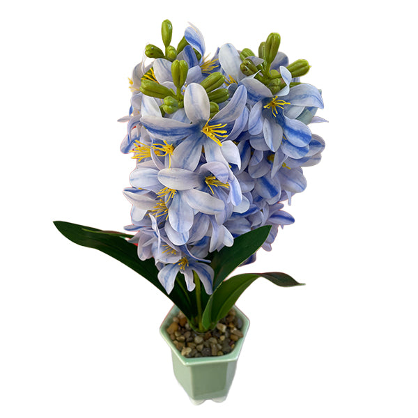 Este jacinto artificial con maceta aporta un toque de color y elegancia natural sin necesidad de cuidados. Su diseño realista y su vibrante floración lo convierten en el complemento perfecto para hogares, oficinas o vitrinas.