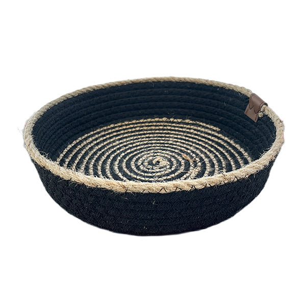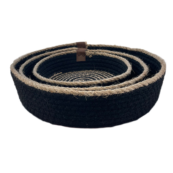 Este hermoso set de 3 canastos de cuerda combina funcionalidad y diseño rústico moderno. Fabricados con cuerda de algodón en tonos negro y beige, son perfectos para decorar y organizar cualquier espacio del hogar: desde el baño hasta la sala.